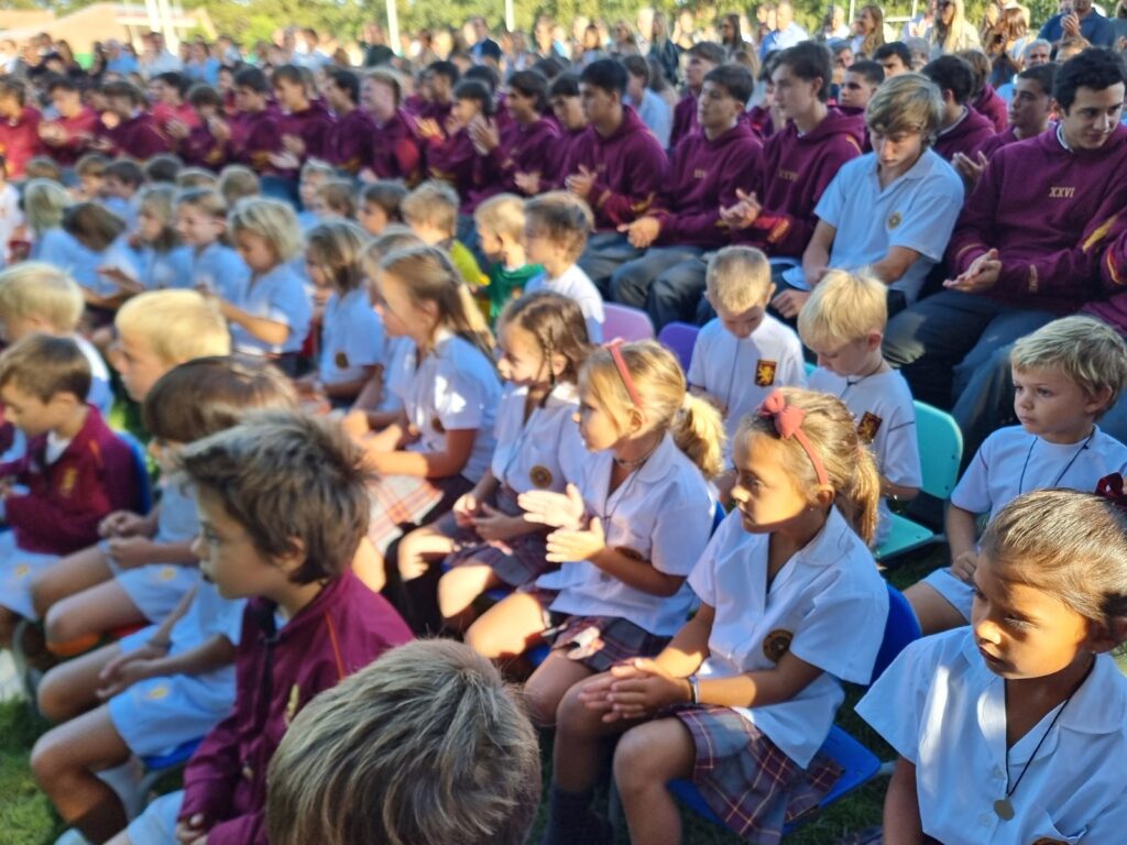 Uno de los momentos más significativos fue el gesto de los alumnos más grandes hacia quienes inician su recorrido en Primaria. La entrega de la medalla de Edmund Rice y su hija Mary no es solo una tradición: es un símbolo que habla de acompañamiento, de legado. Es una manera concreta de decirles a los que llegan que no están solos, que forman parte de una historia que los recibe y los abraza.